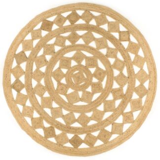 Tapete artesanal em juta com impressão a branco 150 cm – PORTES GRÁTIS