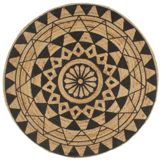 Tapete artesanal em juta com impressão a preto 120 cm – PORTES GRÁTIS