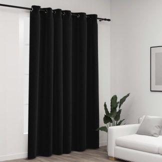 Cortina opaca aspeto de linho com ilhós 290×245 cm preto – PORTES GRÁTIS
