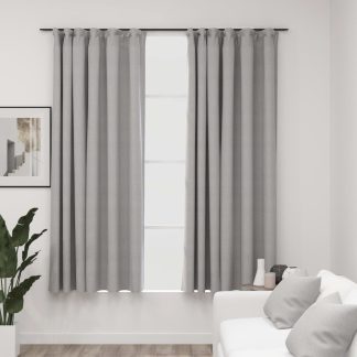 Cortinas opacas asp. linho + ganchos 2pcs 140x245cm cinza-acas. – PORTES GRÁTIS