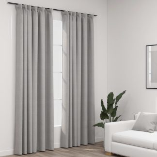Cortinas opacas aspeto linho c/ ganchos 2pcs 140x245cm cinzento – PORTES GRÁTIS