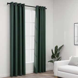 Cortinas opacas aspeto linho c/ ilhós 2 pcs 140×245 cm verde – PORTES GRÁTIS