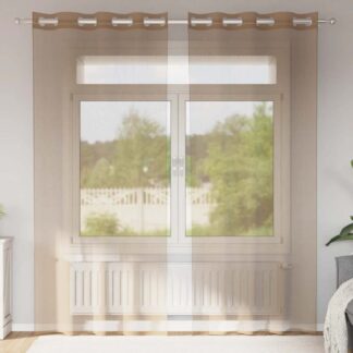 Cortinas de voile com ilhós 2 pcs castanho 140×260 cm – PORTES GRÁTIS