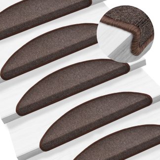Tapetes de escada 15 pcs 65×25 cm tecido agulhado castanho – PORTES GRÁTIS