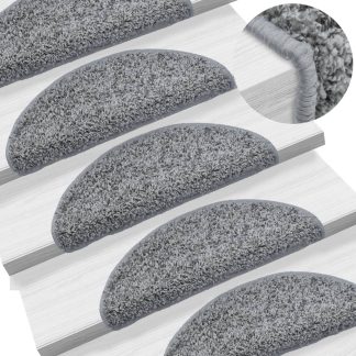 Tapetes de escada 15 pcs 65×25 cm tecido agulhado cinza claro – PORTES GRÁTIS