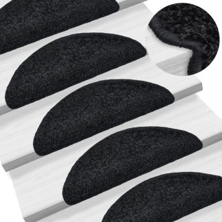 Tapetes de escada 15 pcs 56×20 cm preto – PORTES GRÁTIS