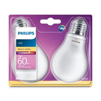 Philips – Lâmpadas LED E27 – 60W-7W 2-pack