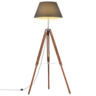 Candeeiro de chão tripé 141 cm teca maciça castanho mel/cinza – PORTES GRÁTIS