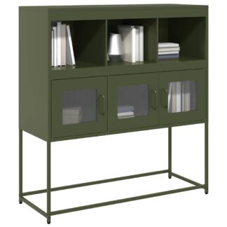 Aparador 100,5x39x107 cm aço laminado a frio verde-azeitona – PORTES GRÁTIS