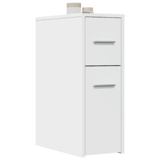 Aparador de WC estreito com rodas derivados de madeira branco – PORTES GRÁTIS