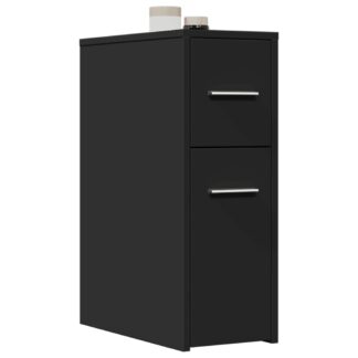 Aparador de WC estreito com rodas derivados de madeira preto – PORTES GRÁTIS