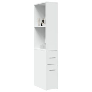 Aparador de WC estreito com rodas derivados de madeira branco – PORTES GRÁTIS