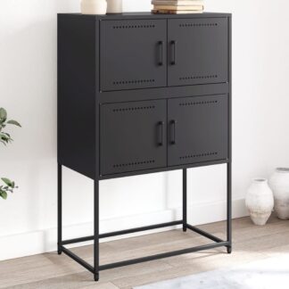 Aparador alto 68,5×38,5×107 cm aço preto – PORTES GRÁTIS