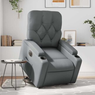 Poltrona reclinável elevatória elétrica couro artif. cinzento – PORTES GRÁTIS