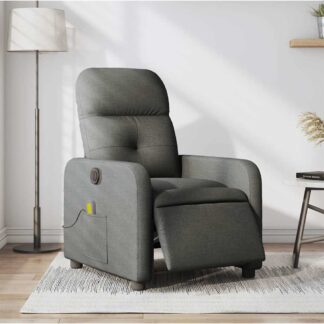 Poltrona reclinável de massagens elétrica tecido cinza-escuro – PORTES GRÁTIS