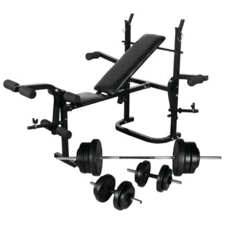 Banco musculação c/ suporte p/ pesos + barras e halteres 60,5kg – PORTES GRÁTIS