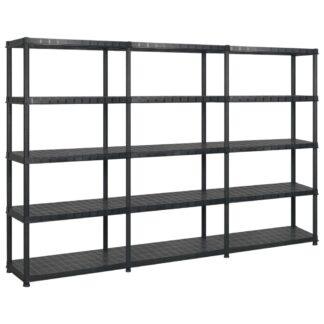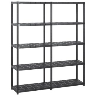 Unidade com 5 prateleiras 284x38x170 cm plástico preto – PORTES GRÁTIS