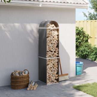 Suporte de lenha 40x45x170 cm aço galvanizado cinza-claro – PORTES GRÁTIS