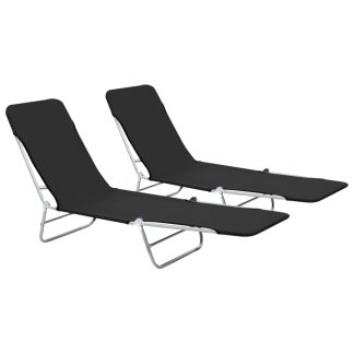 Espreguiçadeiras dobráveis 2 pcs aço e tecido preto – PORTES GRÁTIS