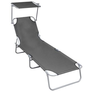 Espreguiçadeira dobrável com toldo alumínio cinzento – PORTES GRÁTIS