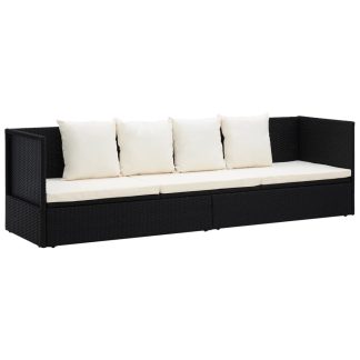 Espreguiçadeira jardim c/ almofadão e almofadas vime PE preto – PORTES GRÁTIS