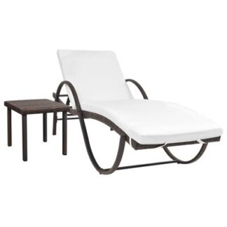 Espreguiçadeira com almofadão e mesa vime PE castanho – PORTES GRÁTIS