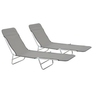 Espreguiçadeiras dobráveis 2 pcs aço e tecido cinzento – PORTES GRÁTIS