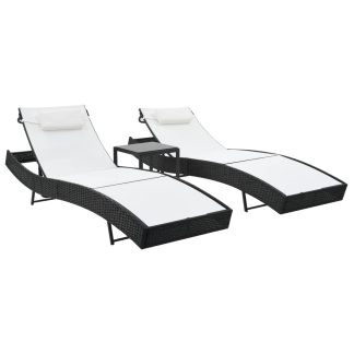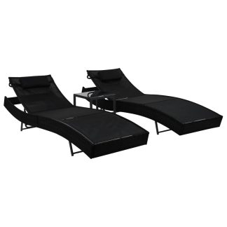 Espreguiçadeiras com mesa 2 pcs vime PE e textilene preto – PORTES GRÁTIS