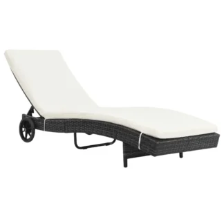 Espreguiçadeira com rodas e almofadão vime PE preto – PORTES GRÁTIS