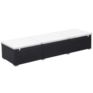 Espreguiçadeira com almofada vime PE preto – PORTES GRÁTIS
