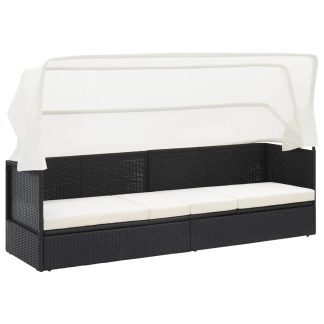 Sofá de jardim com toldo vime preto – PORTES GRÁTIS