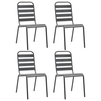 Cadeiras de jardim design ripado 4 pcs aço cinzento-escuro – PORTES GRÁTIS