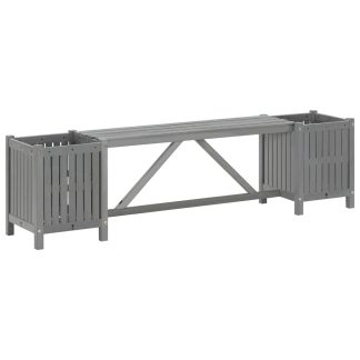 Banco de jardim com 2 vasos 150 cm acácia maciça cinzento – PORTES GRÁTIS