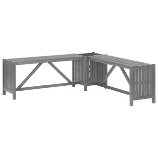 Banco de canto p/ jardim com vaso 117 cm acácia maciça cinzento – PORTES GRÁTIS
