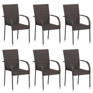 Cadeiras de exterior empilháveis 6 pcs vime PE castanho – PORTES GRÁTIS
