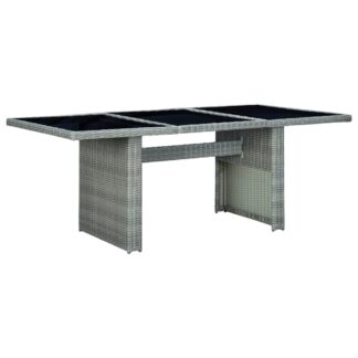 Mesa de jardim vime PE e vidro temperado cinzento-claro – PORTES GRÁTIS