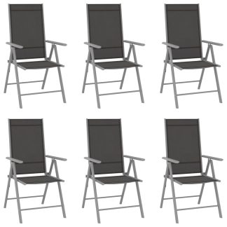 Cadeiras de jardim dobráveis 6 pcs textilene preto – PORTES GRÁTIS