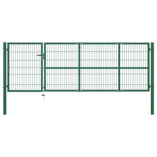 Portão p/ cerca de jardim com postes 350×100 cm aço verde – PORTES GRÁTIS