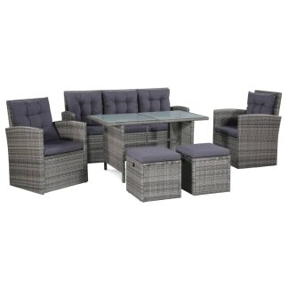 6 pcs conjunto lounge de jardim c/ almofadões vime PE cinzento – PORTES GRÁTIS
