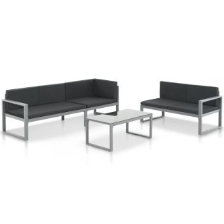 Conjunto lounge p/ jardim com almofadas 3 pcs alumínio preto – PORTES GRÁTIS
