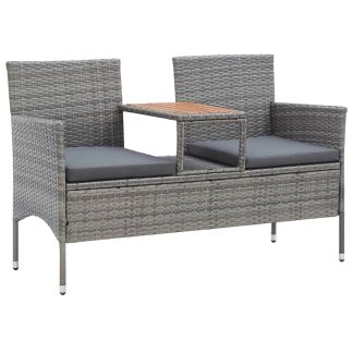Banco de jardim 2 lugares com mesa centro 143 cm vime PE cinza – PORTES GRÁTIS