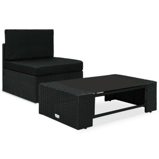 2 pcs conjunto lounge para jardim vime PE preto – PORTES GRÁTIS