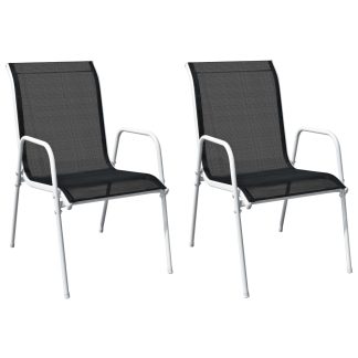 Cadeiras de jardim empilháveis 2 pcs aço e textilene preto – PORTES GRÁTIS