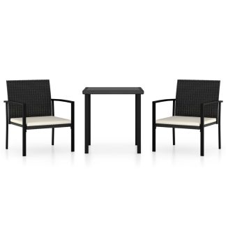 3 pcs conj. jantar para jardim vime PE e madeira acácia preto – PORTES GRÁTIS
