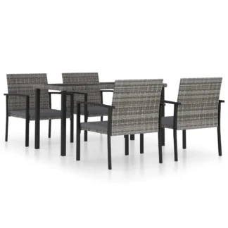 5 pcs conjunto de jardim para jardim vime PE cinzento – PORTES GRÁTIS