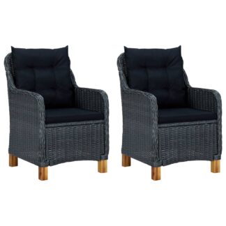 Cadeiras de jardim c/ almofadões 2 pcs vime PE cinzento-escuro – PORTES GRÁTIS