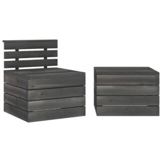 2 pcs conj. lounge de paletes jardim pinho maciço cinza-escuro – PORTES GRÁTIS