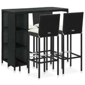 5 pcs conjunto de bar p/ jardim c/ almofadões vime PE preto – PORTES GRÁTIS