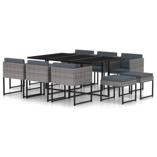 7 pcs conjunto de jardim para jardim vime PE cinzento – PORTES GRÁTIS