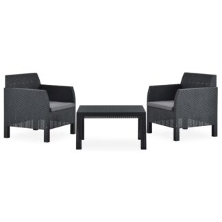 3 pcs conjunto lounge jardim com almofadões PP antracite – PORTES GRÁTIS